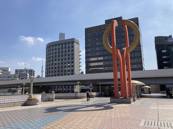 台東区役所から上野警察署の横を抜けて浅草通りに出ます。上野駅交差点から首都高速1号上野線の高架に沿って、上野駅舎を正面に見ながら国道4号線(昭和通り)を進みます。上野駅舎は、初代が1923年の関東大震災で焼失した後、1932年に二代目として落成した歴史がある建物です。東京駅とは違って実用的で目立たない印象ですが、昭和初期の貴重な建築様式を今に伝えています。JR上野駅東口前には、広大なペデストリアンデッキが整備されています。西側の上野恩賜公園とはパンダ橋を経由して繋がり、南側は中央通りを跨いで上野マルイと直結し、東側は昭和通りの上と首都高の下を潜るような形で東京メトロ本社方面とを結んでいます。