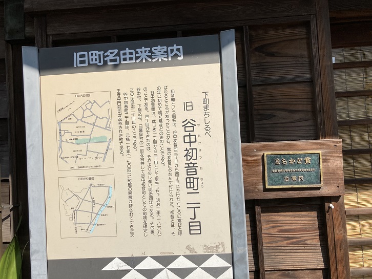 もの凄く年季の入った家屋の前に谷中初音町二丁目の旧町名由来案内板が立っています。初音とは優雅な名前ですね。