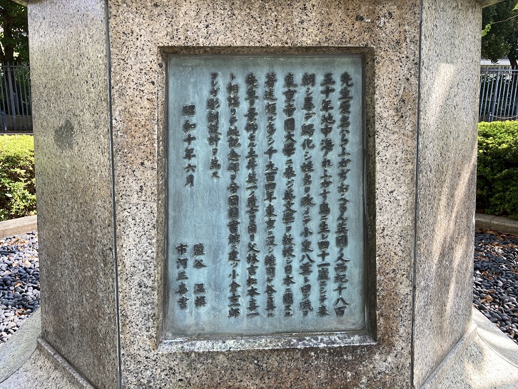 碑面には、大書してこの歌を刻む。ついで、蜀山人についての説明、碑建設のいきさつを、細字で刻んでいる。歌の文字は蜀山人の自筆であるという。蜀山人は姓を大田、名を覃(ふかし)、通称を直次郎といった。蜀山人はその号である。南畝・四方赤良など、別号多く、一般には大田南畝と呼ぶ。幕臣であったが、狂文・狂歌を良くし、漢学・国学を学んで博識であった。江戸文人の典型といわれ、狂歌の分野では唐衣橘洲・朱楽管江とともに、三大家と評された。文政六年(1823年)没。江戸時代、上野は桜の名所であった。昭和十三年、寛永寺総門の黒門跡に、その桜と黒門を詠み込む蜀山人の歌一首を刻み、碑が建てられた。郷土色豊かな建碑といっていい。