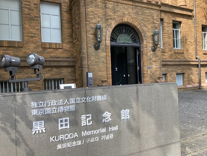 日本近代洋画の父ともいわれる黒田清輝は、大正十三年(1924年)に没する際、遺産の一部を美術の奨励事業に役立てるよう遺言しました。これをうけて昭和三年(1928年)に竣工したのが黒田記念館です。館内には、遺族の方々から寄贈された遺作を展示して画家を顕彰するために黒田記念室が設けられました。昭和五年(1930年)には、記念館に美術に関する学術的調査研究と研究資料の収集を目的として、現在の東京文化財研究所の前身である美術研究所が設置され、日本・東洋美術に関する調査研究業務が行われてきました。平成十二年(2000年)の新庁舎の竣工により、東京文化財研究所の全ての業務が新庁舎に移ったのに伴い、黒田記念館が昭和初期における美術館建築(岡田信一郎設計)として貴重なものであることから、創建当初の姿に復することとなりました。そこで、2階部分を中心に改修が行われ、平成十三年(2001年)9月に開館、平成十四年(2002年)に国の登録有形文化財となっています。