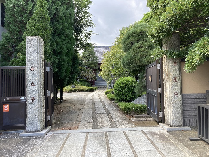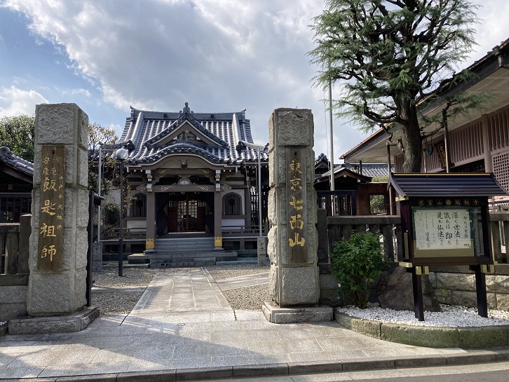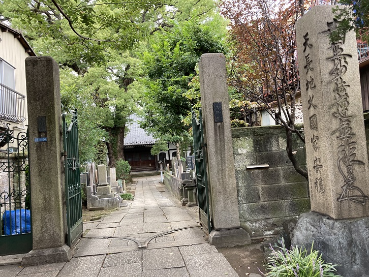 見所ポイントGの「一乗寺」は、天正十八年(1590年)頃に日僚(茂原妙光寺17世)が開山となって創建されました。境内には漢学者大田錦城の墓所の他、浪曲師の三代目東家楽遊、歌舞伎の四代嵐芳三郎、五代嵐芳三郎、六代嵐芳三郎、江戸時代の医師大久保適斎、参議院議員木島則夫、勘定奉行杉岡能連、日本画家鈴木鵞湖、明治時代の都々逸の名人柳家紫朝などの墓所があります。