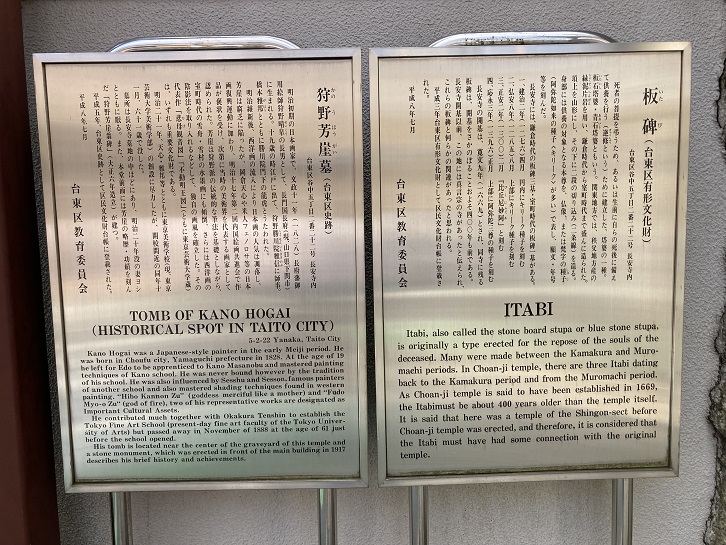 長安寺には、台東区の有形文化財に指定されている狩野芳崖のお墓や600年以上も前に建立された板碑4基もあります。