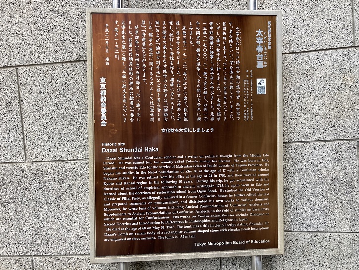 Shibue Chusai was a medical practitioner and Confucian scholar at the end of the Edo period (1600-1868). He was born in Kanda in Edo (old Tokyo) in 1805, the son of the doctor to the Hirosaki clan. In 1844 he became a teacher at the medical research center in present-day Asakusabashi 4-chome (the research center is now the medical department of Tokyo University). His works include "Keise ki Hokoshi" which he wrote in collaboration with Mori Kien. In 1858 Chusai caught cholera, dying at the age of 54. He was It was not until after his death that Chusai's buried in this temple.
