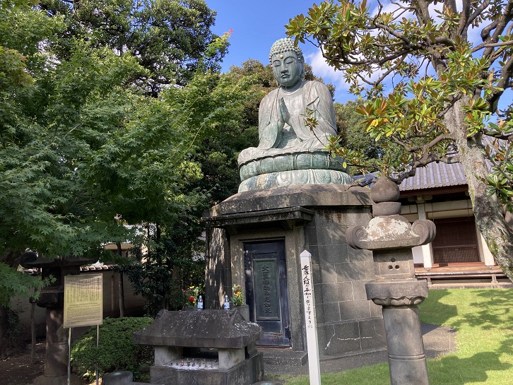 境内には、お釈迦様の銅像も鎮座しています。江戸六地蔵並みの大きさですね。
