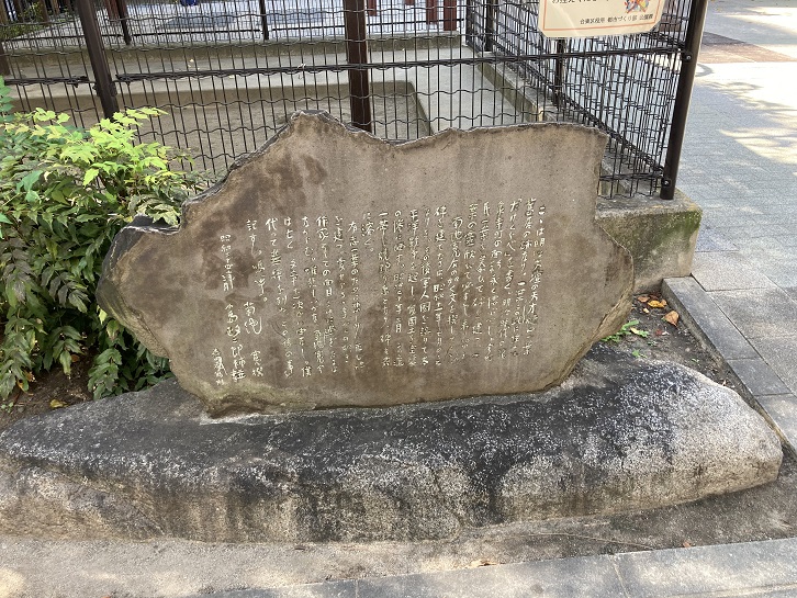 菊池寛右の如く文を撰してここに碑を建てたるは、昭和十一年七月のことなりき。その後軍人国を誤りて太平洋戦争を起し、我国土を空襲の惨に晒す。昭和二十年三月、この辺一帯焼野ヶ原となり、碑も共に溶く。