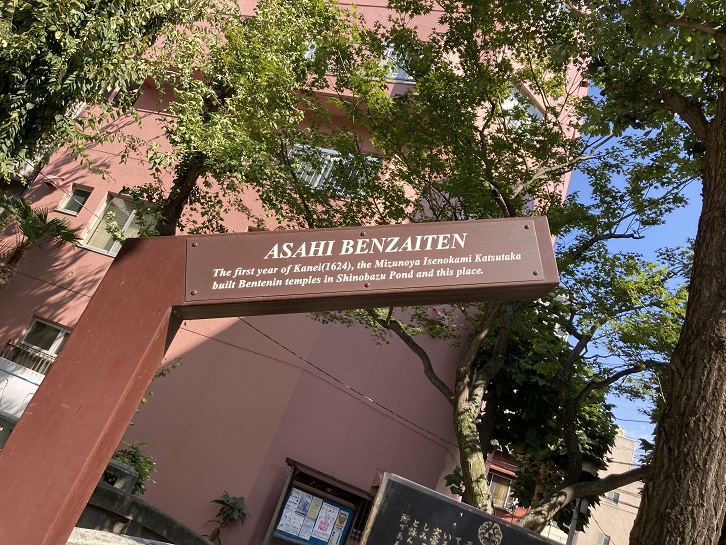 朝日辨財天は、下谷七福神の弁財天を祀っています。御堂の横に由来記を記した石碑が建っています。ちなみに、弁財天は、芸能上達などの「才」だけでなく、金運の「財」にも通じる神となっています。弁財天の主な御利益は、商売繁盛・交通安全・金運上昇・芸事上達などです。