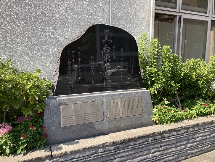 台東区立柏葉中学校の前に、かっての台東小学校の記念碑が建っています。