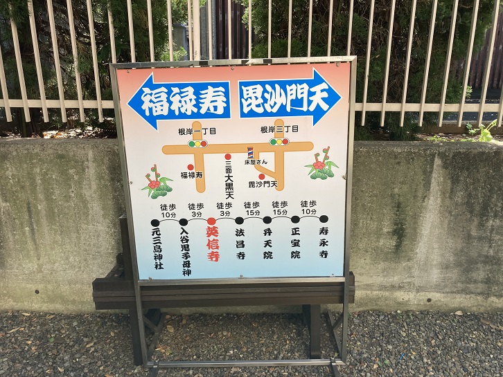寿永寺の布袋尊・飛不動尊の恵比寿神など、下谷七福神を巡るコースです。