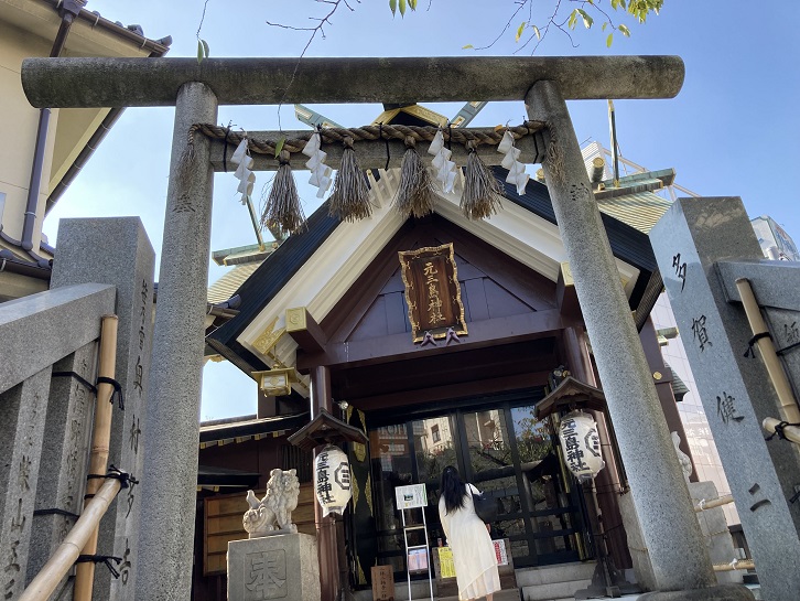 鶯谷駅北口正面に鎮座する見所ポイントFの「元三島神社」は、弘安年間(1278年〜1288年)に創建されました。13世紀の後期、モンゴル帝国が2度にわたり日本を攻めた蒙古襲来がありました。1度目の襲来は、文永十一年(1274年)の文永の役で、2回目の襲来は、弘安四年(1281年)の弘安の役です。その頃、伊予国の武将に鎌倉幕府御家人の河野通有という武将がいました。伊予国は現在の愛媛県松山市です。河野通有は2回目の元寇である弘安の役に参加しました。その途中、河野通有は地元の大山祇神社で勝利を祈りました。大山祇神社は瀬戸内海の大三島にある神社です。戦勝祈願をしたところ、成就して武勲を挙げることができたため、河野通有は大山祇神にとても感謝しました。そして、夢の中で「武蔵国豊島郡に大山祇命の分霊を勧請せよ」という霊夢を見たことから、屋敷のある上野山に大山祇命を祭神とする神社を創建しました。しかし、寛永二年(1625年)に幕府は上野山に寛永寺を建てることになり、神社は慶安三年(1650年)に上野山から立ち退きを命じられ、代替地の金杉村(現在の台東区根岸)に移転しました。宝永七年(1710年)に河野通有の神社がある土地は幕府から再度立ち退きを命じられ、浅草小揚町(現在の台東区寿)に移転しました。これが現在の本社三島神社です。しかし、金杉村の氏子は神社から取り残されることになったため、改めて分霊を勧請することになりました。そのようにして創建されたのが元三島神社です。「元」が冠されているのはそのような由来からです。