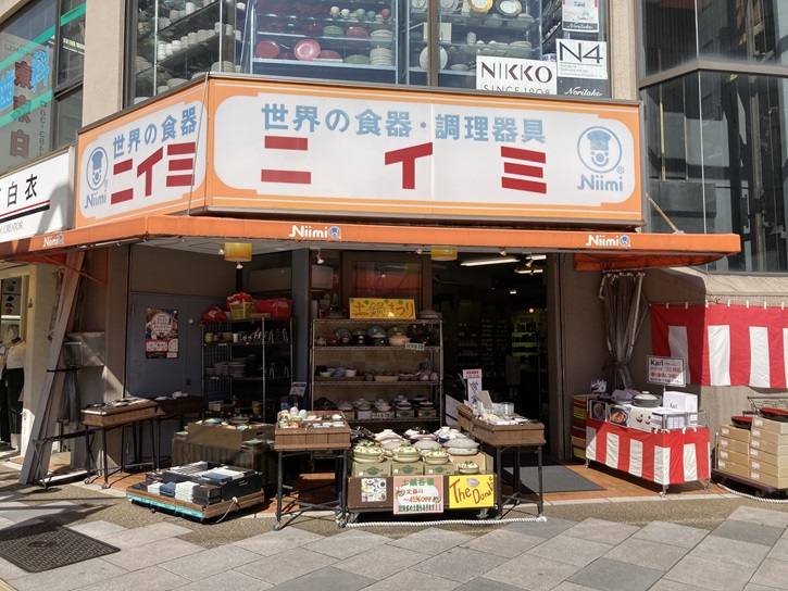 菊屋橋交差点の角に面して、「ニイミ」というテーブルウエア・調理機器・厨房用什器備品を扱う専門店のビルが建っています。店名は知らなくても、屋上に巨大なコックさんの像が鎮座するお店といえば分かるでしょう。コックさんの正式な名称は、「ジャンボコック像」で、高さ11m・重さ10tもあるそうです。ちなみに、コック像のモデルとなったのは、ニイミ店の二代目店主だそうです。現在の三代目社長室には、1/10サイズのオリジナルモデルが置かれているとのこと。巨大な像をどうやって屋上に取り付けたのでしょうかね?