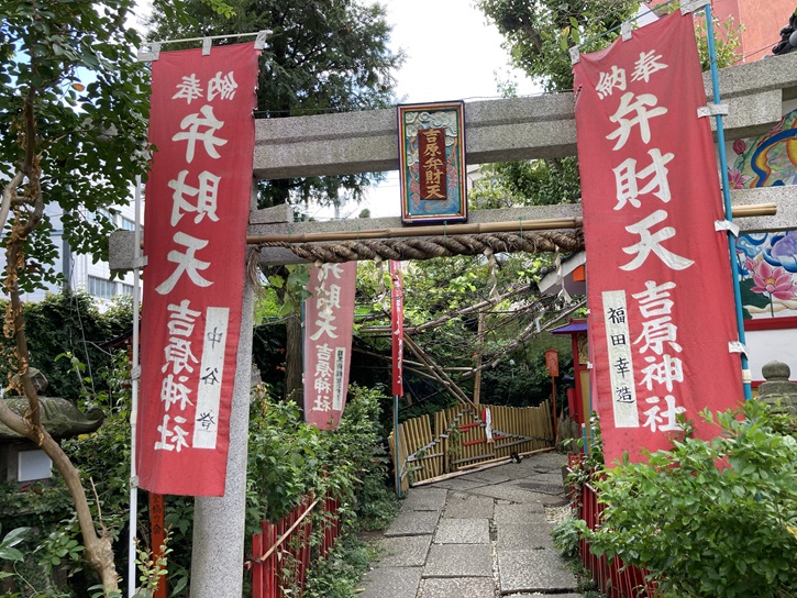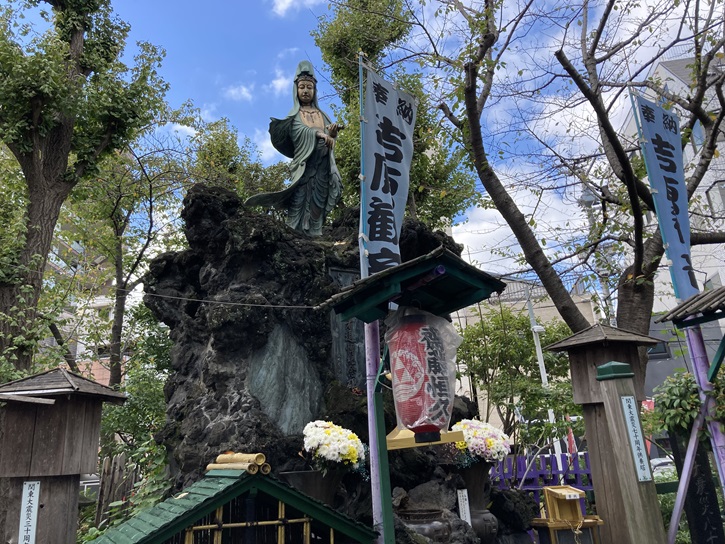 見所ポイントBの「吉原辨財天」は、弁財天本宮(吉原神社奥宮)とも呼ばれ、昭和十年に吉原神社に合祀されたため、正確には独立した神社ではありませんが、現在も鎮魂碑等多くの遺構を残しています。