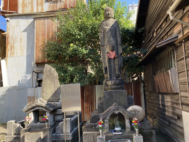 路地に面した小さな広場に巨大な地蔵尊が建っています。