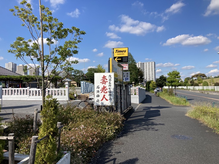 明治通りを渡った角に、石浜城址公園があります。石浜城は、中世の武蔵国に存在した日本の城ですが、正確な所在地については意見が分かれています。現在の台東区浅草七丁目付近、あるいは荒川区南千住三丁目付近が候補地となっています。石浜(石濱)は浅草の北側にある古利根川(現在の隅田川)右岸地域の呼称であり、この付近に武蔵国と下総国(千葉県)の境目をつなぐ「隅田の渡し」があったとされています。築城年代は不明ですが、中世には江戸氏一族の石浜氏が本拠を構え、南北朝時代の文和元年(1352年)には、新田義興の追撃を受けた足利尊氏がこの地で武蔵平一揆に迎えられて追撃を退けています(武蔵野合戦)。室町時代中期の享徳の乱に伴って発生した千葉氏の内紛では、宗家の生き残りである千葉実胤(千葉兼胤の孫)が下総国を追われて扇谷上杉氏の庇護下に入り、石浜城を拠点としました(武蔵千葉氏)。この際、弟の自胤も赤塚城に逃れています。ですが、下総回復は達成できず、扇谷上杉氏の没落後は後北条氏に従って同氏一族の千葉胤村を当主に迎え、豊臣秀吉による天正十八年(1590年)の小田原征伐によって没落し、石浜城も廃城となりました。石浜城は、曲亭馬琴の「南総里見八犬伝」にも登場しています。
