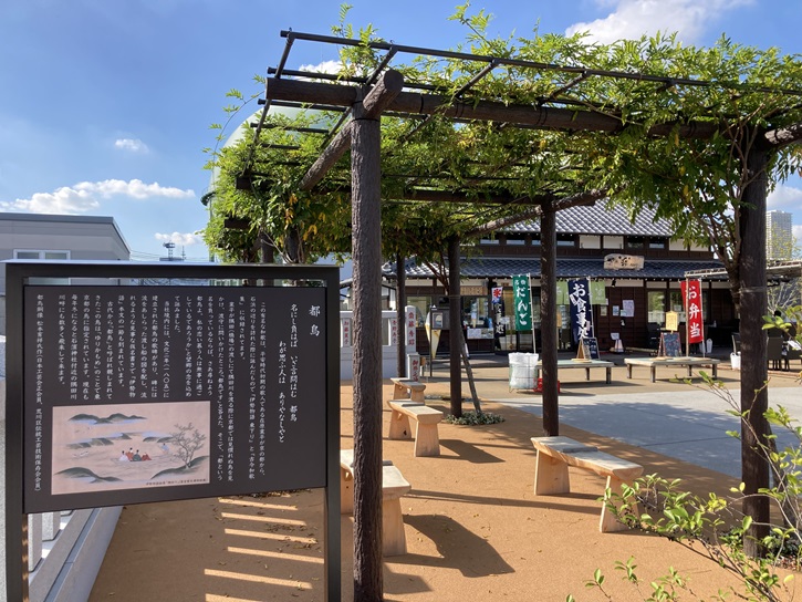 都鳥は在原業平の和歌ですが、その案内板が藤棚の脇に立っています。
