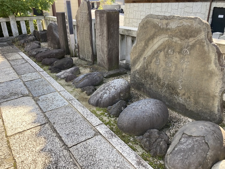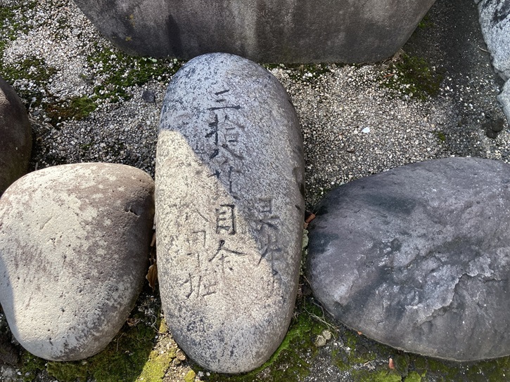 力石がずらりと並んでいます。38貫は142.5kgに相当します。