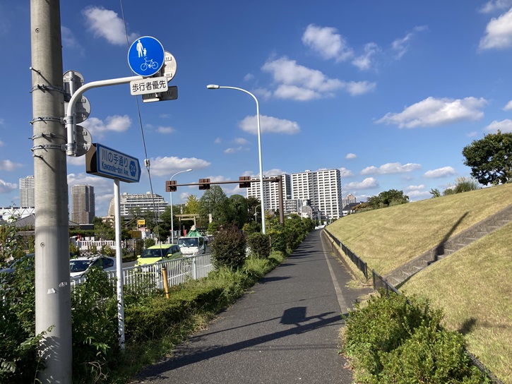 明治通りを渡って、川の手通りを北に向かいます。隅田川の土手にふたつの案内板が立っています。