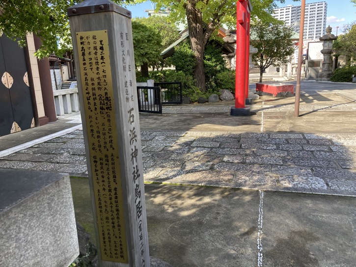 石浜神社鳥居(寛延二年八月哉生明銘)