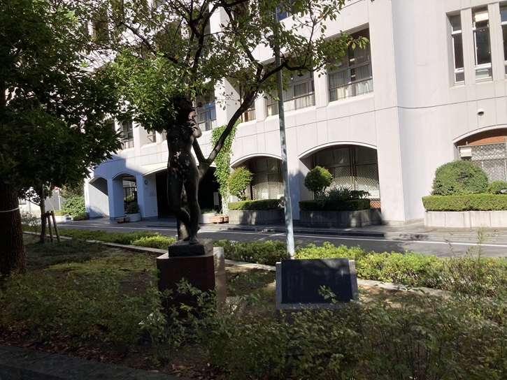 「たいとう健康都市宣言あこがれ像」は、都立浅草高等学校に面した山谷堀公園内に建っています。作者は朝倉文夫氏です。