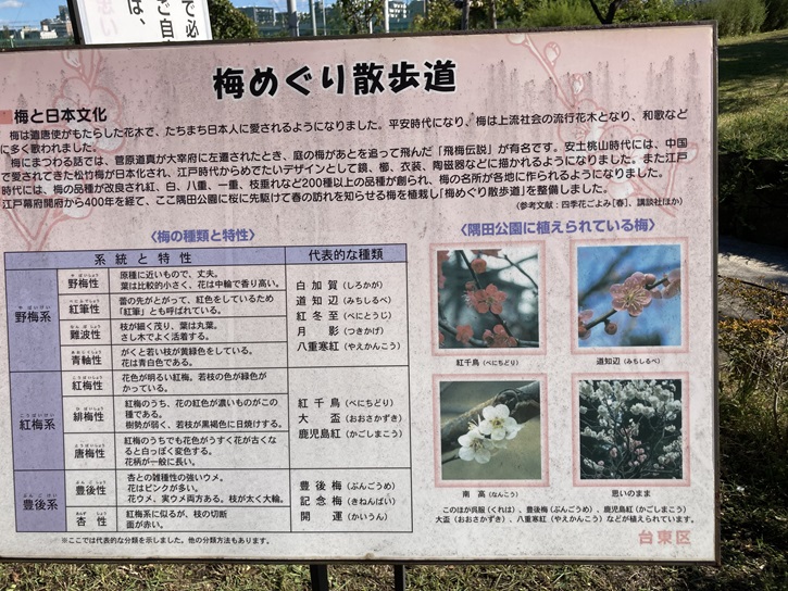 隅田公園は桜の名所としてだけでなく、梅の名所としても有名です。