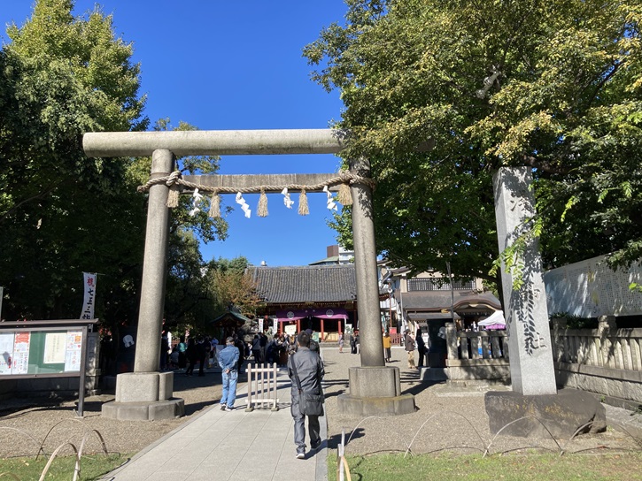 スタート地点の鳳神社から歩き始めます。鷲神社は「おとりさま」の通称でも呼ばれ、11月の例祭は「酉の市」として江戸時代中期から広く知られています。足立区花畑の大鷲神社の「おおとり」に対し、鷲神社は「しんとり」と称されました。明治初年の神仏分離に伴い、隣接する長国寺から独立し鷲神社となりました。