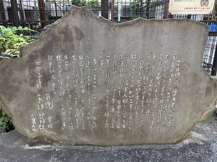 of Taito-ku. Inscribed on the monument is the following two verses by Ichiyo's friend,