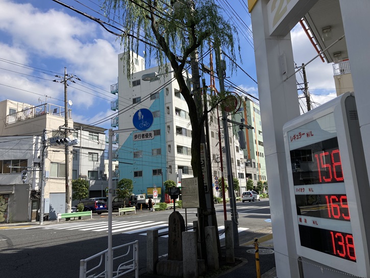 土手通りを南下して、ゴール地点の「見返り柳」に着きました。土手通りという名称は、「日本堤(にほんづつみ)」という土手があったことにちなんで命名されました。日本堤とは、現在は台東区北部の町名のひとつですが、元々は隅田川の氾濫による洪水を防ぐ目的で、元和六年(1621年)に江戸幕府によって築かれた堤防です。幕府は待乳山を崩した土で今戸橋(待乳山聖天近く)から箕輪浄閑寺(荒川区三ノ輪)まで、日本堤という堤防を築きました。堤防の北側には、石神井川から分かれた音無川の下流となる山谷堀が流れていました。また、明暦の大火(1657年)以降、堤防の南側には吉原遊郭が人形町から移転してきました。以後、日本堤は「吉原土手」とも呼ばれ、また、土手上は見晴らしがよく、長さも6町余りあり、「土手八丁」とも言われました。現在の「土手通り」は、この日本堤が取り壊された跡になります。