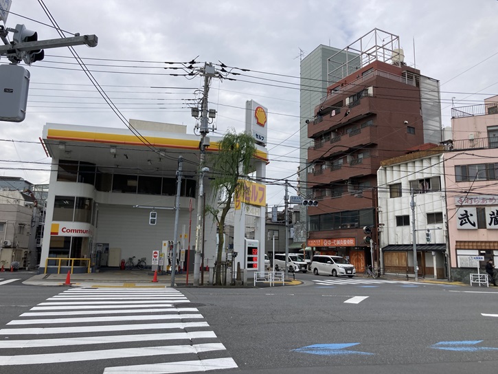 石浜公園から見所ポイント@の「アサヒ商店街・日の出会通り」に出ます。どちらも道路の両側に昭和レトロなお店が建ち並んでいます。