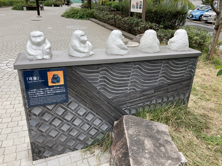 山谷堀公園内には今戸焼の置物が展示されています。鉄砲狐とは、その形状が鉄砲の弾に似ていることからそのように呼称されました。主に稲荷神への神社の奉納用として用いられ、今戸焼きの狐の中でも代表的な存在といえます。特徴としては、今戸焼きの鉄砲狐は底が抜けている形です。かつては江戸(東京)中の稲荷神社へ今戸焼きの狐が奉納されていましたが、今では見た目の近い瀬戸物の鉄砲狐に取って変わられつつあります。