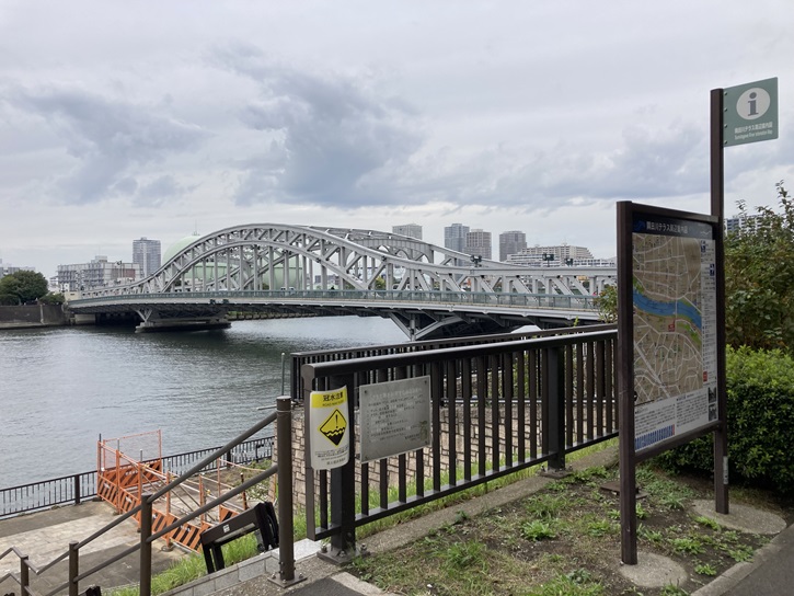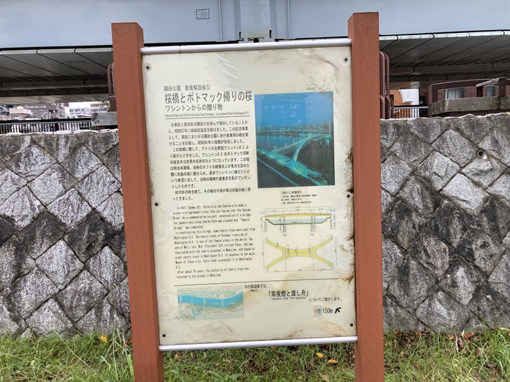 桜橋の袂にはワシントンから里帰りした桜の木が植えられています。