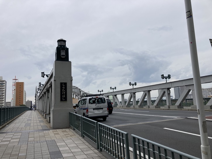 隅田川に架かる明治通りの橋が見所ポイントJの「白鬚橋」です。橋名は東岸にある「白鬚神社」に因んでいます。なお、「白(髭:くちひげの意)橋」と誤記されることがありますが、「白(鬚:あごひげの意)」が正しい表記です。白鬚橋が架かっている場所には元々「橋場の渡し」と「白鬚の渡し」という渡船場がありました。特に橋場の渡しは、江戸時代の文禄三年(1594年)に千住大橋が架橋されて主だった街道筋が移されるまでは隅田川を渡る中心地でした。伊勢物語の東下りの中で在原業平が有名な「言問」の歌を詠んだのはこの渡しとされています。
