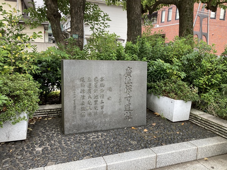 この地は、昭和四十六年まで廣徳寺があった場所で、この石碑は、練馬別院に移転の際に、廣徳三十世雪底和尚によって詠まれた七言絶句を記したものです。また、石碑の裏側には、廣徳寺が移転した理由が記されています。なお、この解釈にあたっては、廣徳寺海雲和尚のご協力を賜わったものです。