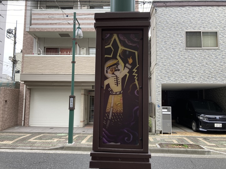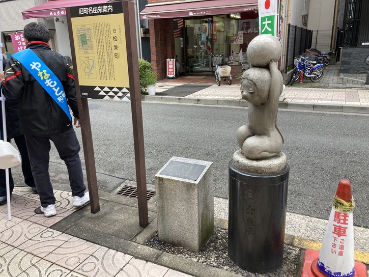 旧松葉町の案内板にあった「合羽川太郎」は、本名が「合羽屋喜八」だったそうです。文化十一年(1814年)に合羽屋喜八が亡くなって見所ポイント@の「曹源寺」に葬られると、曹源寺は「かっぱ寺」と呼ばれるようになりました。