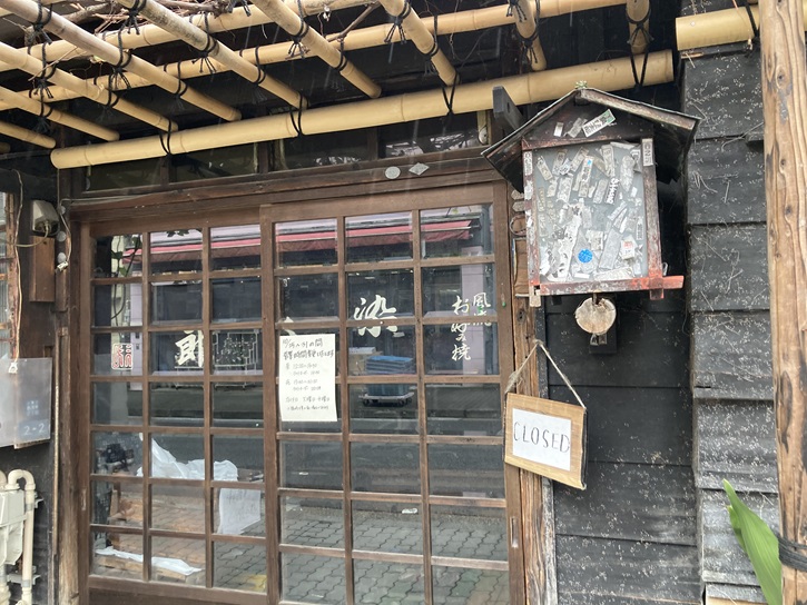 浅草でお好み焼き屋といえば、昭和十二年(1937)年創業の「染太郎」ですね。平屋の店舗の左半分が生い茂った樹木で覆いつくされ、外観からして老舗の雰囲気があります。名物は四方をお餅で固める「しゅうまい天」なのだそうです。生地にひき肉と玉ねぎを入れてかき混ぜた後、ちょっと隙間をあけてお餅で囲いを作り、間に生地を注ぎます。生地がある程度固まったところでお餅の幅を詰めて四角く成形します。お餅と生地がくっついたらひっくり返し、お餅が膨らんできたらもう一回ひっくり返します。ソースではなく、かるく醤油をかければ完成です。ひき肉のジューシーな味わいと外側のモチモチした食感が組み合わされたのが「しゅうまい天」と呼ばれるようになった所以だそうです。もうひとつの名物が焼きそばです。染太郎の焼きそばはソースを垂らす前から麺が茶色になっています。麺を染めているので、店名が染太郎になったのだとか。