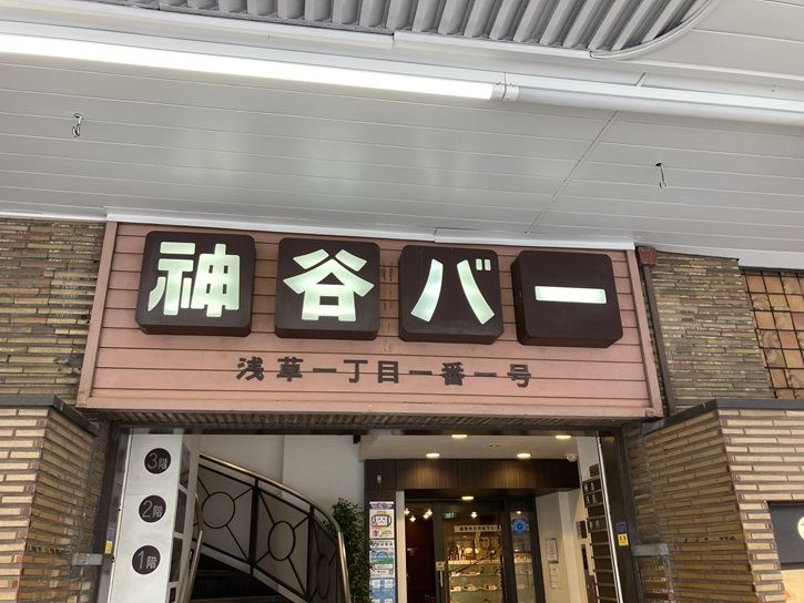 神谷バーはお酒を飲むだけのお店のように感じますが、2階はレストラン、3階は割烹となっているみたいです。恐らくは私には縁遠い高級店だと思いますが。ちなみに、神谷バーは日本最初のバーとして知られています。電気ブランが有名ですね。神谷バーは明治十三年(1880年)4月に神谷伝兵衛によって創業されました。当初は酒店で、濁り酒を売っていました。現在の電気ブランの元になった速成ブランデーが製造・販売されたのは明治十五年(1882年)のことです。明治四十五年(1912年)になって、店舗内部を西洋風にして屋号を「神谷バー」と改めました。電気がめずらしい明治の頃、目新しいものが「電気○○○」などと呼ばれて舶来のハイカラ品と人々の関心を集めていましたので、神谷バーで考案されたブランデーをベースに、そのほかジン・ワイン・キュラソー・薬草などをブレンドしたカクテルに電気ブランという名前が付けられました。電気ブランはたいそう強いお酒で、当時はアルコール度数が45度もありましたが、それがまた電気とイメージが重なって、この名がぴったりだったみたいです。