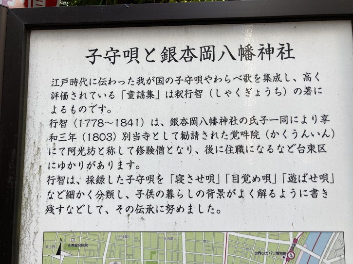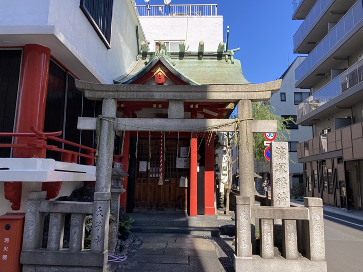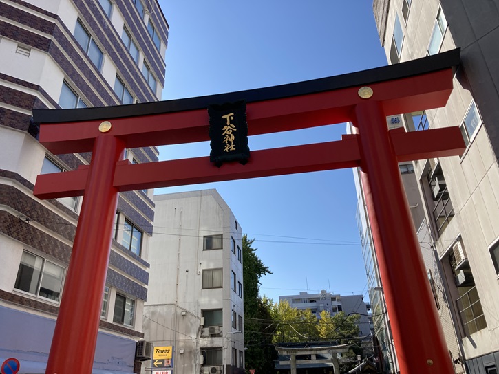 スタート地点の下谷神社から歩き始めます。浅草通りに面して、下谷神社の深紅の大鳥居が建っています。大鳥居の扁額は東郷平八郎の筆によるものです。下谷神社は、元々は現在の上野公園にあたる地に鎮座していました。古くは下谷稲荷社とか下谷稲荷明神社と呼ばれた都内最古の稲荷神社で、東京メトロ銀座線の稲荷町駅に名を残す旧町名の稲荷町はこの神社の旧称が町名の由来となっています。下谷神社は、天平二年(730年)に峡田の稲置らが建立したとも、行基が伏見稲荷大社を勧請したとも伝えられています。天慶二年(939年)に平将門による天慶の乱追討祈願のため、藤原秀郷が社殿を新造したといわれています。寛永年間になり、境内が寛永寺山内となったため、寛永四年(1627年)に下谷屏風坂下に移転しました。明治五年(1872年)に下谷神社と改称し、翌年下谷地域の郷社と定められました。関東大震災で社殿を焼失し、昭和三年(1928年)に現在地に移転しました。現在の社殿は昭和九年(1934年)に完成しました。下谷神社の大祭は「江戸の祭りは下谷から」と言われるように下町で最も早い夏祭りで、隔年に行なわれる例大祭で近隣町内を渡御する本社神輿は台輪幅4尺1寸の千貫神輿といわれ、大きな威容を誇っています。担手だけで7000人以上が集まり、境内の周囲には150もの露天商が軒を並べます。