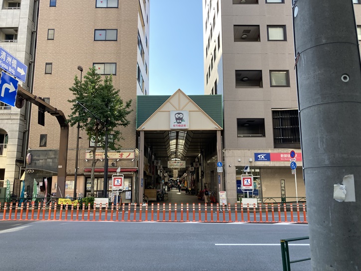 下谷神社の脇から春日通りまで南下します。春日通りに面したつくばエクスプレス線の新御徒町駅に隣接して、梟マークの佐竹商店街のアーケードが南北に延びています。秋田久保田藩主佐竹右京太夫の江戸屋敷には、上屋敷・中屋敷・下屋敷の他、お囲地などがありました。このうち、上屋敷は当初内神田佐竹殿前(現千代田区神田)にあり、そこには鎌倉の佐竹屋敷から移築された金彫絢爛たる「日暮らしの門」がありました。しかし天和二年(1682年)十二月二十八日の八百屋お七の放火による江戸の大火で焼失してしまいました。こんなこともあってか、翌天和三年(1683年)に現在の台東区の地に移転してきました。移転後の屋敷内には「日知館」という江戸藩校も設けられていて、山本北山・大窪詩仏などの有名な師を招いて子弟の教育に当たらせました。幕末期の安政二年(1855年)には、ここに居住する人員は百三十六名に及んだと記録されています。江戸屋敷の役割は、各藩とも藩主の常住地ともいうべき場所で、特に藩主夫人は徳川幕府の人質のような形で居住を強制され、国元には専ら第二夫人がいて、これをお国御前と呼んでいました。各藩の江戸屋敷は幕府の監視の元にありながらも、それぞれ国元の城よりも江戸屋敷を大切にしたといわれています。参勤交代の制度は江戸中期の頃から乱れがちとなり、各藩の経済的困窮から経費節約の意味からも藩主はほとんど江戸に常住するようになりました。そして江戸屋敷を母体として、種々の政治折衝や各界との交際、情報の交換・収集などを行なって藩の運営の糧とし、それと共に新しい文化の吸収に努めたといわれています。なので各藩ともより抜きの有能な士を江戸家老留守居用人として江戸屋敷詰めにしました。秋田の久保田城(現、秋田市内)から江戸までの道のりは百四十三里(536キロメートル)あり、当時は一日九里(36キロメートル)前後を歩いたといますから、普通で十六日、早くて十二日半の日数を要し、飛脚でも六〜七日かかったといいます。各藩にとって江戸屋敷は重要な政治的・文化的拠点であり、自国の一部がそこに存在していたのも同然だったのです。なので佐竹藩も広大な敷地に当時としてはまったく希有な三階建ての豪壮華麗な建物を設け、他に誇ったのでしょう。屋敷の西側には大番与力同心の組屋敷があり、そこにあった総門を竹門と呼んでいて、ここから「竹町」の町名が生まれたといわれています。明治維新の後、廃藩置県が実施され秋田藩そのものが消失します。当然その上屋敷も任務を失いました。明治二年(1869年)には火災により建物はすべて焼失してしまい、屋敷内は荒れるにまかされ、草ぼうぼうと生い茂り、佐竹っ原といわれるに至りました。明治五年(1872年)には国に上納されて大蔵省の所管となり、一時は陸軍省用地として使用されていたこともありました。その頃は戸数六十八戸・住民数二百六十八名で、周辺に比べ最も閑静な場所でした。しかし、明治十七年(1884年)頃から民間に貸し下げられ、次々と民家が建ち並び、店舗が軒を連ねるようになり、竹町の街・佐竹商店街が形成されたのです。年を経るごとに盛り場娯楽街として充実発展していきました。かっぽれ・吹き矢・デロレンなど、葦簀張りの小屋掛けが出来、借り馬・打球場・大弓などの大道商売も始まり、それにつれて飲食店・粟餅の曲搗き・しるこ屋・煮込み・おでん・大福餅売りなどが縁日の露店のような形で店を出し、寄席・見せ物小屋が並ぶようになりました。六三亭・久本亭・浜村亭・天理亭・寿亭・開成亭などがその主なものでした。さらに、祭文定席・玉ころがし・射的・大弓場などもでき、義太夫・講談・落語・祭文語りが聞け、茹小豆を売る店などが並びます。そして日暮れ時ともなれば、浅草向柳原に住む露店商などが街路にところ狭しと出店を張り、また一歩路地に入れば紅灯の下で客引く声も艶かしく、亀屋・竹内などの料亭を始め、第二富士館という活動写真館もできて一段と賑やかさを増し、一大歓楽境となっていきました。近郷近在は無論のこと、遠方からも人々が集まり、夜の更けるのも忘れてしまうほど賑いを極めました。大正初期には戸数三千八百十三戸・人口一万二千三十四名にまで膨張し、下町佐竹の名は東京中に響きわたり、明治から大正時代にかけての黄金時代を築き上げていったのです。大正十二年(1923年)九月一日の関東大震災で佐竹全域ことごとく灰燼に帰し、一面の焼け野が原と化してしまいました。しかし罹災直後から全店主が一丸となって復興にあたり、街を取り巻いていた堀(藩邸時代の名残り)も埋め立てられ、区画整理・道路拡張なども進み、以前にも増して近代的な商店街として再生し、芝日陰町・京橋八丁堀と共に下町三大商店街の一つに数えられるほどの賑わいを取り戻すことができました。昭和十六年(1941年)、太平洋戦争の開戦と共に世の中は軍事一色に塗り潰され、佐竹商店街は火の消えたよ
