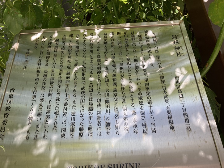 The Torikoe Shrine, founded in about 651, is an establishment dedicated to