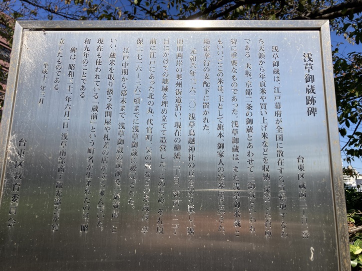 蔵前橋通りを右折して左衛門橋通りを南下します。「左衛門橋」は神田川に架かる橋ですが、江戸時代にはこの橋はまだありませんでした。この橋の北詰には、1598年から明治維新まで、出羽鶴岡藩(庄内藩)の大名であった酒井左衛門尉の下屋敷があり、近辺の河岸地は殿様にちなんだ「左衛門河岸」の名が定着していました。明治に入って橋を架けることになった際にこの河岸地の名前に倣うかたちで左衛門橋と名付けられたようです。この左衛門橋北詰から金美館通りの入谷一丁目交差点までの道路を左衛門橋通りと呼びます。