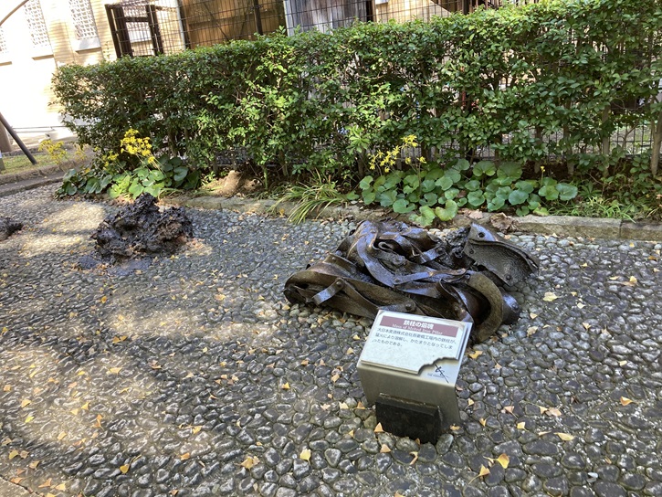 復興記念館の横には、関東大震災で焼け爛れた多くの遺物が展示されています。