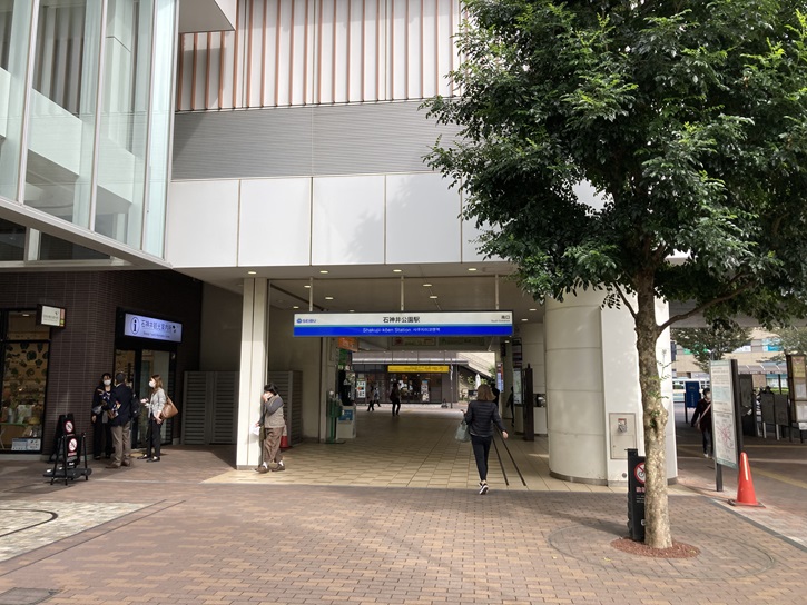 スタート地点の石神井公園駅南口から歩き始めます。石神井公園駅は、大正四年(1915年)4月15日に「石神井駅」として開業し、昭和八年(1933年)に現在の駅名の「石神井公園駅」に改称されました。特急と平日朝ラッシュ時に千鳥停車運用で運行される通勤準急を除いた全旅客営業列車が停車する利便性の高い駅です。「千鳥停車」とは、混雑時間帯などに列車の種別(特急・急行・準急・普通など)によって同一時間帯に停車駅を分散させる方式です。