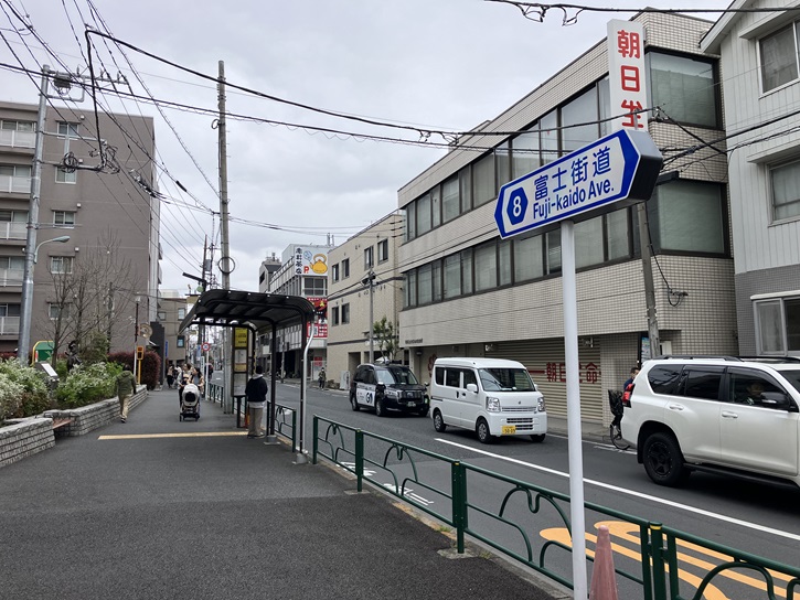 古道は富士街道と交差します。富士街道は、練馬区の谷原交差点から西東京市の西武柳沢駅付近までを結ぶ都道で、富士山が見えることに因んで歴史的に定着した名称の「富士街道」と呼ばれるようになりました。