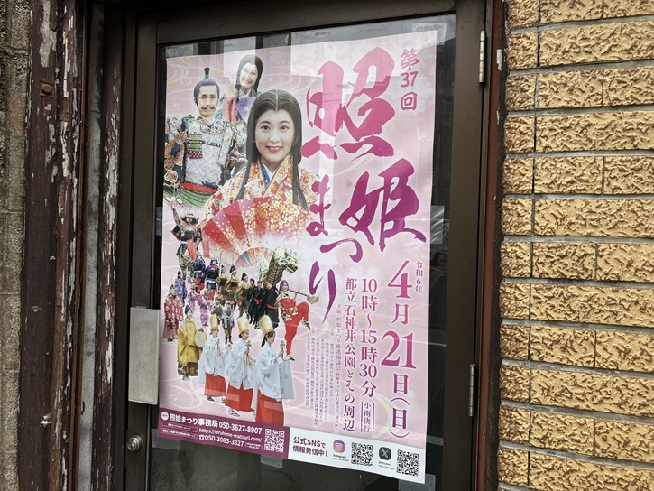 こちらは東京都教育委員会の案内板です。商店街に「照姫まつり」のポスターが沢山貼り出されていましたが、これは地元に伝わる「金の乗鞍と照姫」の伝説を題材にした物語です。伝説のあらましは、次の通りです。