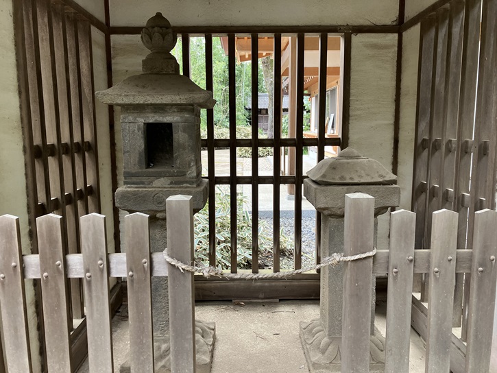 本殿横に豊島氏奉納の石燈籠が保存されています。豊島氏奉納の石燈籠は左右一対で、総高154センチメートルの大きさです。右側のものは火をともすところであった火袋を失っています。竿に「元禄十二己卯歳(1699年)十二月吉祥日」「石神井郷 願主豊嶋七兵衛尉平泰盈」の銘があります。左の方は磨滅により願主銘文が欠落していますが、泰盈の子、泰音の寄進と伝えられています。