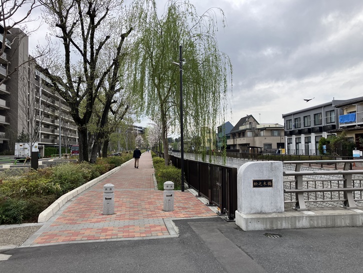 根ケ原橋の先の左手から細い路地が通っています。これはかっての水路跡なのだそうです。石神井川には多くの水路から水が流れ込んでいましたが、今は暗渠化されたり埋め立てられたりしています。ポイント8の「水路敷を辿って」を楽しむのも一興ですね。