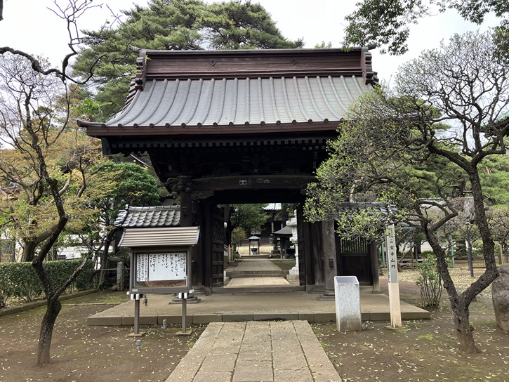 文政十年(1827年)建立の山門は「御成門」とも称され、境内で最古の建築物です。徳川家光が鷹狩りで立ち寄ったことに因んで御成門と称されています。