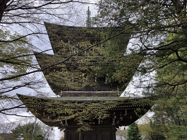 境内には、総檜造りの三重塔が聳えています。数百年も経った建築物かと思いましたが、実際には昭和四十八年(1973年)に建てられたとのことです。