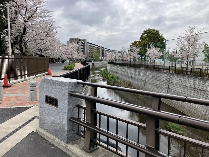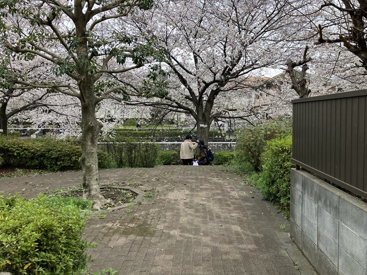 石神井川と井草通りが交差する地点に架かる橋が蛍橋です。蛍橋の先には「さくらの辻公園」があり、ポイント6の「橋詰の広がり」が見て取れます。さくらの辻公園は石神井川沿いのお花見スポットとして有名な公園で、公園内には砂場やすべり台などが設置されていて、地元の親子連れの憩いの場となっています。ところどころにあるベンチやテーブルではお弁当を広げる姿が多く見られ、静かな雰囲気の中でゆっくりとピクニック感覚で過ごせます。今は満開の時期は過ぎましたが、見事な桜のトンネルの下を花吹雪を浴びながら歩くことができます。