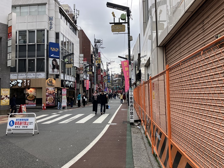 - 石神井公園駅から商店街通りを進んでいくと、道が折れ曲がっていて先が見通せません。この通りの先には石神井公園。賑わいを道路空間に閉じ込め、さらにはこの先への期待を抱かせます。