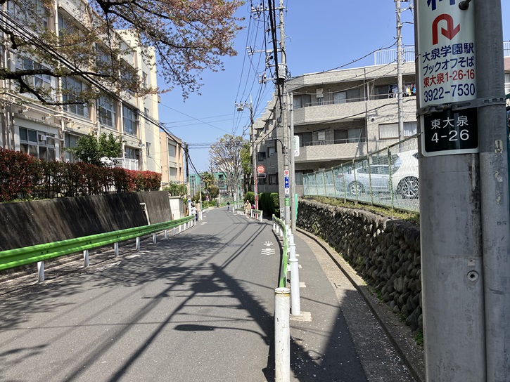 大泉小学校の東側を通る坂道は、かって清戸道と呼ばれた旧道でした。