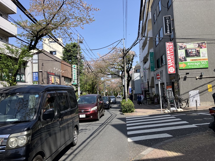 大泉学園通りを北に進みます。通りの両側には葉桜の木々が立ち並んでいます。